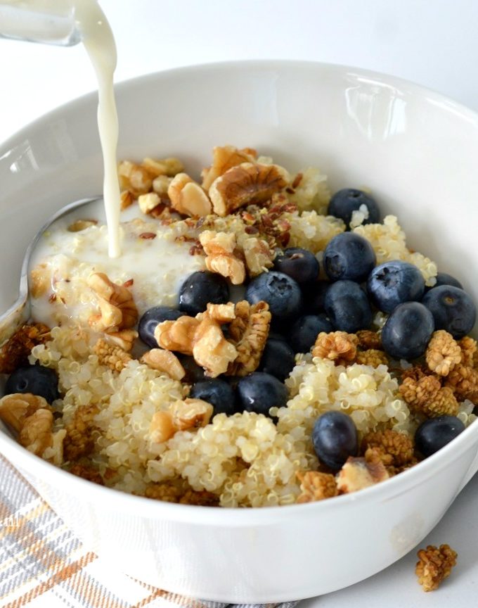Recept: Quinoa ontbijt bowl met blauwe bessen