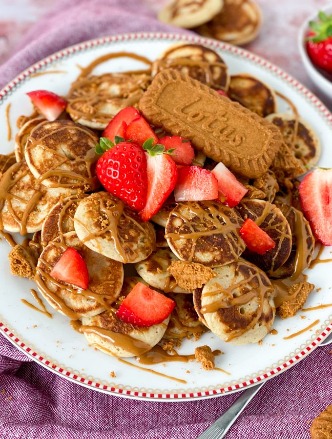 Poffertjes zijn een echte Hollandse traktatie! Niet alleen als snack op de kermis of food festivals, maar wist je dat poffertjes ook heel erg lekker als ontbijt zijn? Maak eens deze Speculoos poffertjes met verse aardbeien, Lotus biscuits en warme speculoospasta. Dat wordt smullen!