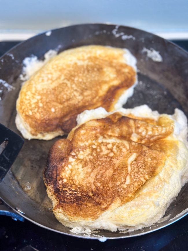Heb jij ooit een schuimomelet gemaakt? Dat is een luchtige variatie op de boerenomelet en eentje die ik regelmatig maak met overgebleven eiwitten. Ideaal als no-food-waste recept, vol met proteine en gewoonweg erg lekker als ontbijt of lunch.