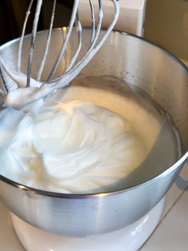 1. Klop alle eiwitten samen stijf in een kom. Dit kan met behulp van een garde, keukenmixer of zelfs een foodprocessor. Je moet als het ware de kom ondersteboven kunnen houden zonder dat het er uit loopt.